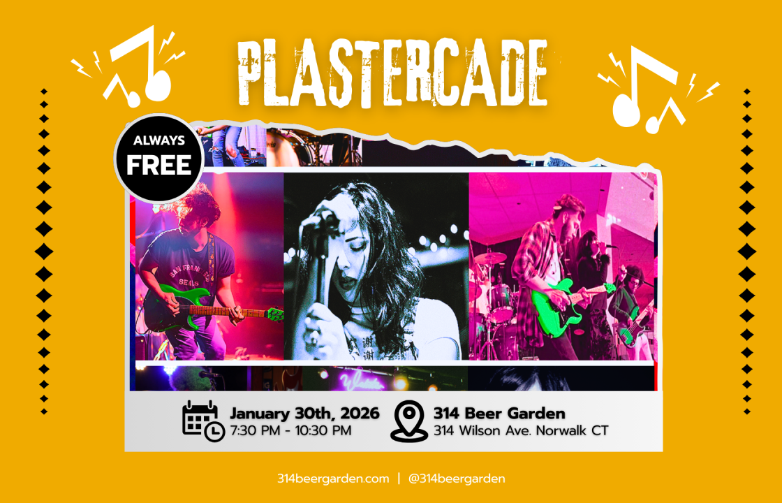 Plastercade is a powerhouse classic rock cover band bringing the legendary sounds of the 60s and 70s to life. With dynamic performances that honor rock’s golden era, the band has lit up some of Connecticut’s top stages, including Mohegan Sun Wolf Den, Toyota Oakdale Dome, Park City Music Hall, and Fairfield Theatre Company. From soaring vocals to ripping guitar solos, Plastercade delivers the music you love with the energy and authenticity it deserves—making every show a celebration of rock and roll’s greatest decades.19:00