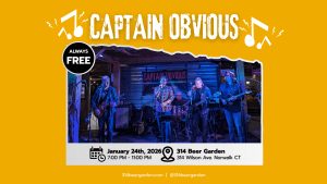 Hailing from Southern Connecticut and Westchester County NY, Captain Obvious plays all the rock, pop and R&B you love to get up and dance to. Captain Obvious will have the crowd fist-pumping and shaking their money-makers all night!