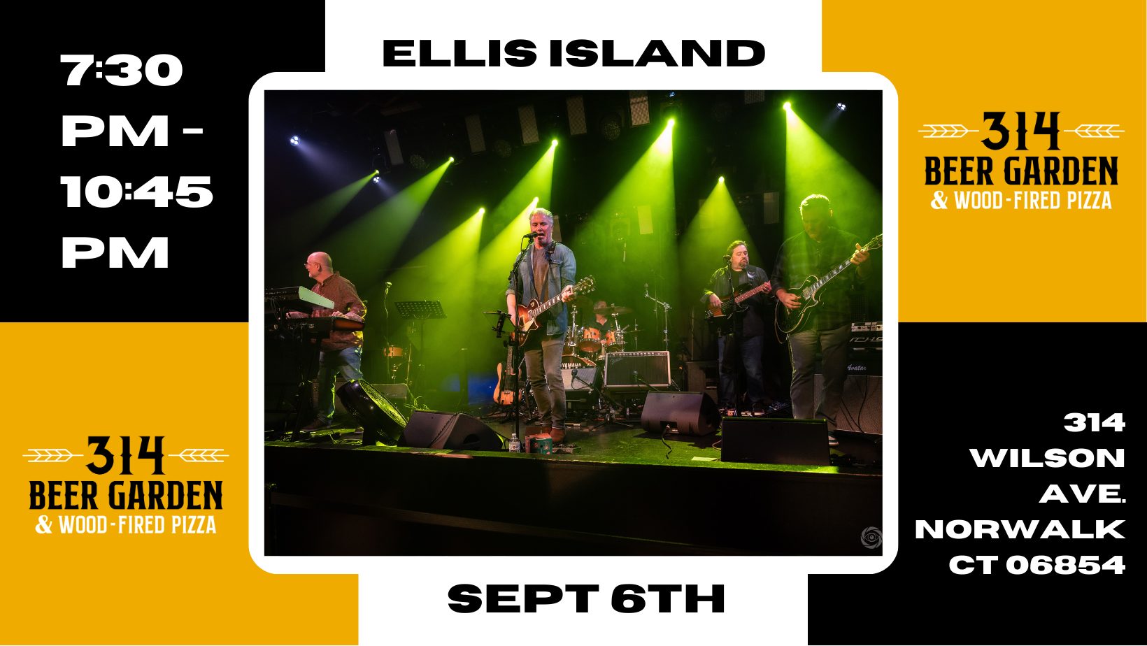 Ellis Island is a five-member Fairfield, Connecticut -based rock band with an extensive song list made up of some of the most iconic and impactful music from the ’70s to today. The band covers a wide array of bands from Pink Floyd, Led Zeppelin, Tom Petty, and Bruce Springsteen to Radiohead, The Black Crowes, Pearl Jam, and Foo Fighters.