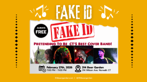 Fake ID Band has been bringing the party to Fairfield County and beyond for years! Enjoy a great mix of party tunes from Dua Lipa to Led Zeppelin, Neil Diamond, Fleetwood Mac, Aretha Franklin, Miley Cyrus, Tom Petty, Grateful Dead, Bruno Mars and all points in between! Featuring Scott Williams on guitar, Stephanie Harrison (also of Moonrise Cartel fame) on the mic, Benj LeFevre (Deep Banana Blackout) and Joe Izzo on the drums.