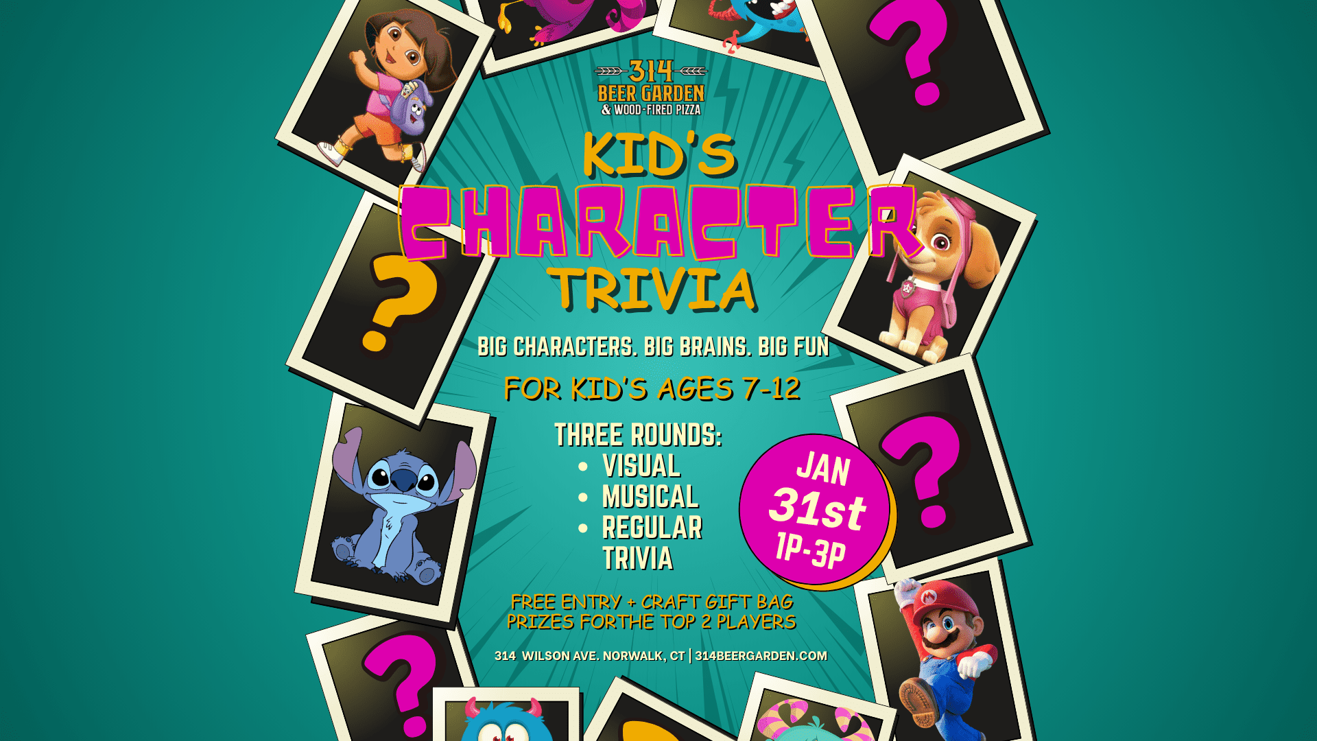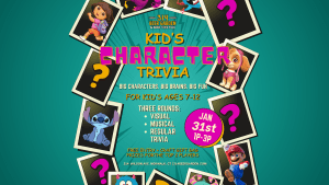 Kid’s Character Trivia is happening Saturday 1/31 from 1p–3p and it’s designed for kids ages 7–12 who know their favorite characters by heart.