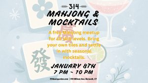 Bring your own tiles and settle in for a cozy winter night of friendly games and zero-proof creations. Thursday, January 8 from 7p–10p.